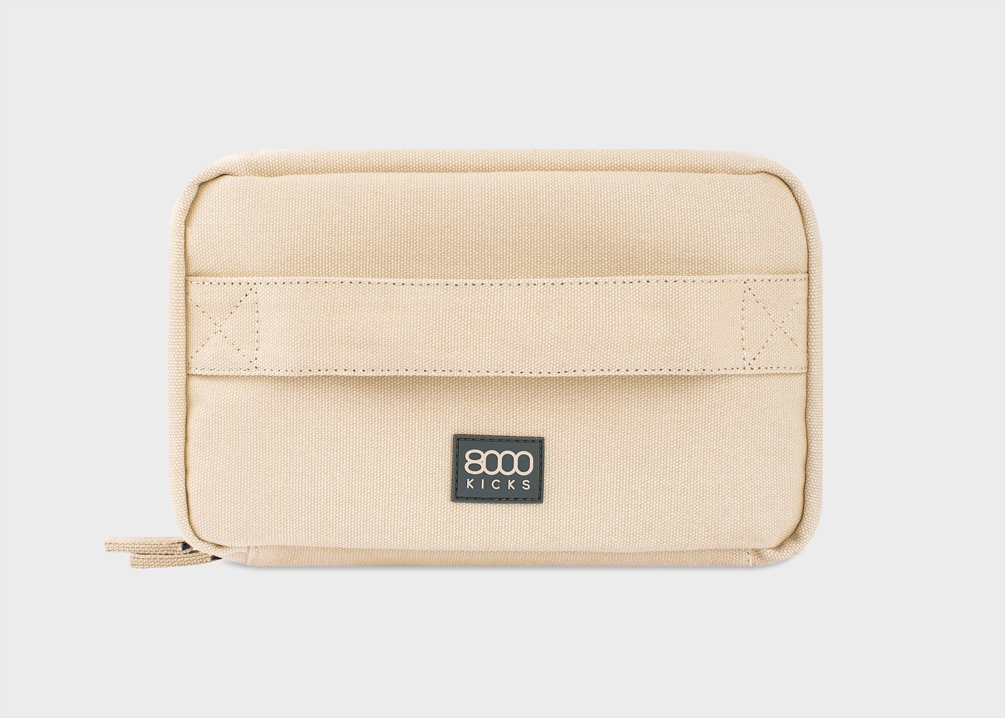 The toiletries bag is the personal bag to carry all your hygiene products. It unfolds and hangs from a hook with many sections inside giving you the possibility to organize all your trip essentials. It comes in two colors, Beige and Black.
